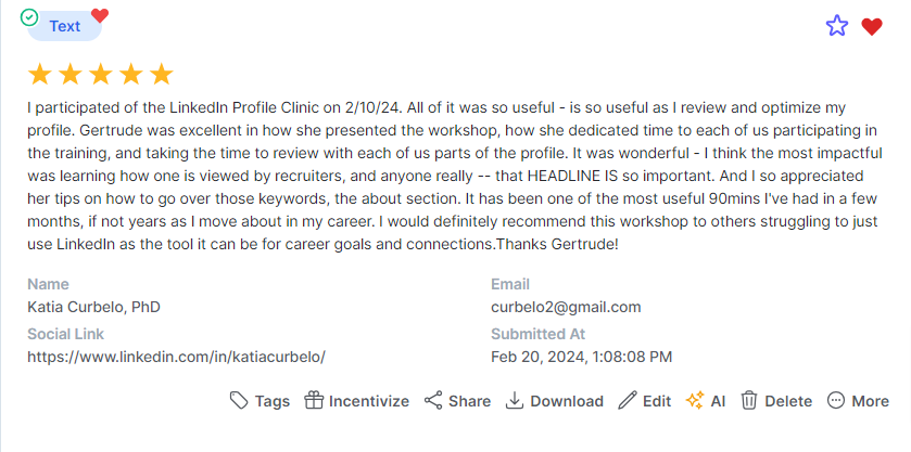 See and hear Dr. Nonterah answer workshop attendees' questions LIVE and provide coaching on their profiles. (A $150 value if you were to book me for an hour of 1:1 coaching.)